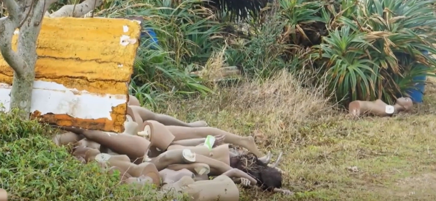 ▼墾丁國家公園內出現大量被拆解的假人模特兒被棄置在草叢。(圖/東森新聞)