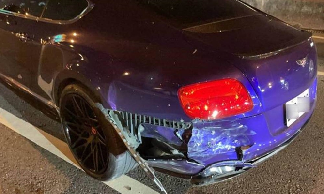 ▼賓利駕駛因不當變換車道,造成追撞,維修費恐超過百萬。(圖/警方提供)