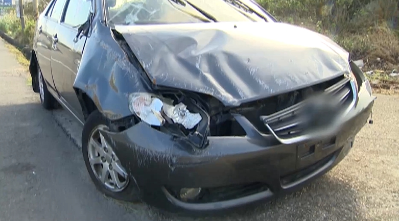 駕駛林小姐一度受困車體當中,所幸自行脫困後沒有大礙,只是車頭嚴重凹陷,擋風玻璃碎裂,整部轎車可以說是全毀。