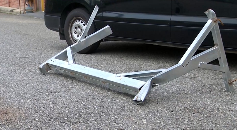 ▼鐵架幾乎是3分之2台箱型車的長度,警方及駕駛也積極調閱行車紀錄器尋找載運鐵鐵架的車輛。(圖/東森新聞)