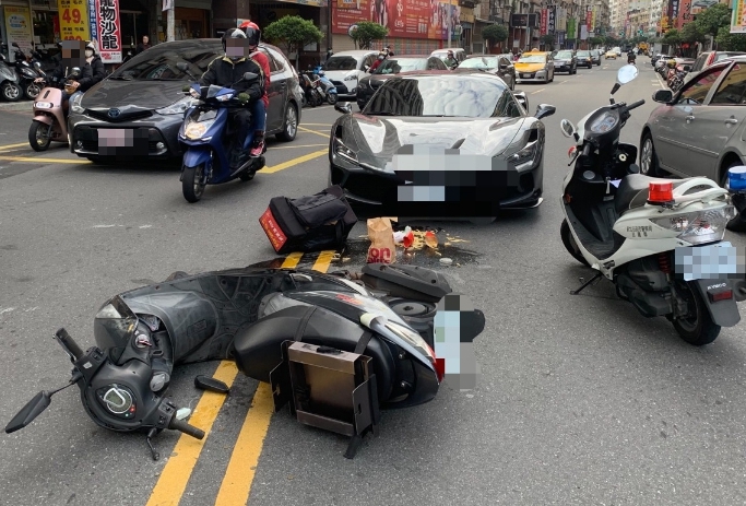 「有車禍,請盡量改道」一名網友在臉書「我是永和人」警告大家,他表示位於新北市永和區的永貞路與永利路口現場發生了事故,原PO也貼出照片,畫面中大家能看到,一輛銀灰色的法拉利停在對向車道,前面橫躺一輛麥當勞送的機車,外送袋整個掉在地上,裡面的薯條、飲料全翻倒,模樣慘烈。
