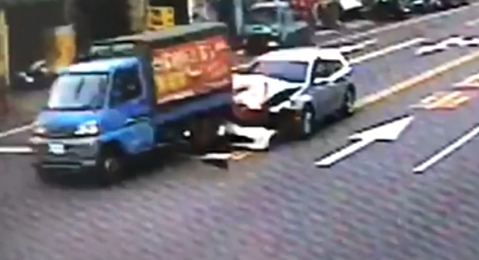 消防人員們拉起水線灌救試圖將火勢撲滅,銀色的小客車被燒得焦黑,車頭已經撞得凹陷,往內一看車身內部幾乎全毀,畫面怵目驚心這起追撞意外,發生3日早上七點半,台中市大里中興路,從監視器畫面中,可以看到一輛,載著雞蛋的小貨車,正在等待左轉燈,被肇事的自小客車,從左後方撞上,小客車立刻起火燃燒,接著直接往民宅衝,引起的巨大聲響,嚇壞附近民眾。民眾:「今天禮拜天,大家都還在睡,就是車禍很大聲,都跑下來看,結果是車子走火,他有先撞到什麼再撞進來,他跟那台貨車吧,跟貨車,跟那台貨車相閃。」