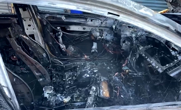▼車內被燒到面目全非。(圖/東森新聞)