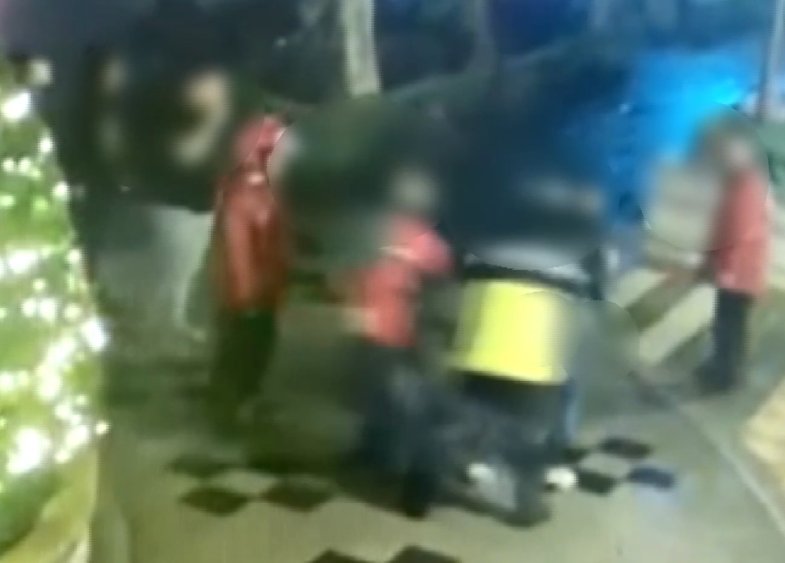 從監視器畫面可以看見一群人在大樓門口吵架,黑色上衣的林姓男子持刀攻擊紅色外套的外送員,旁邊其他人見狀立刻把他拉開,不斷進行勸阻,然而發生衝突的兩人還是一直互瞪,林姓男子甚至還想要上前理論,經過黃色雨衣的騎士努力勸架,雙方才沒有再爆發衝突。
