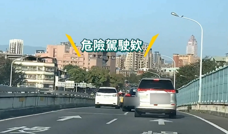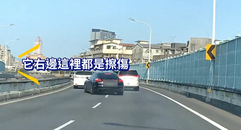 開著名車卻在橋上不斷危險蛇行,被後方車輛拍下。當時駕駛想要鑽車,只要看到有縫可鑽硬要鑽過去,北市警方表示已經接獲檢舉。