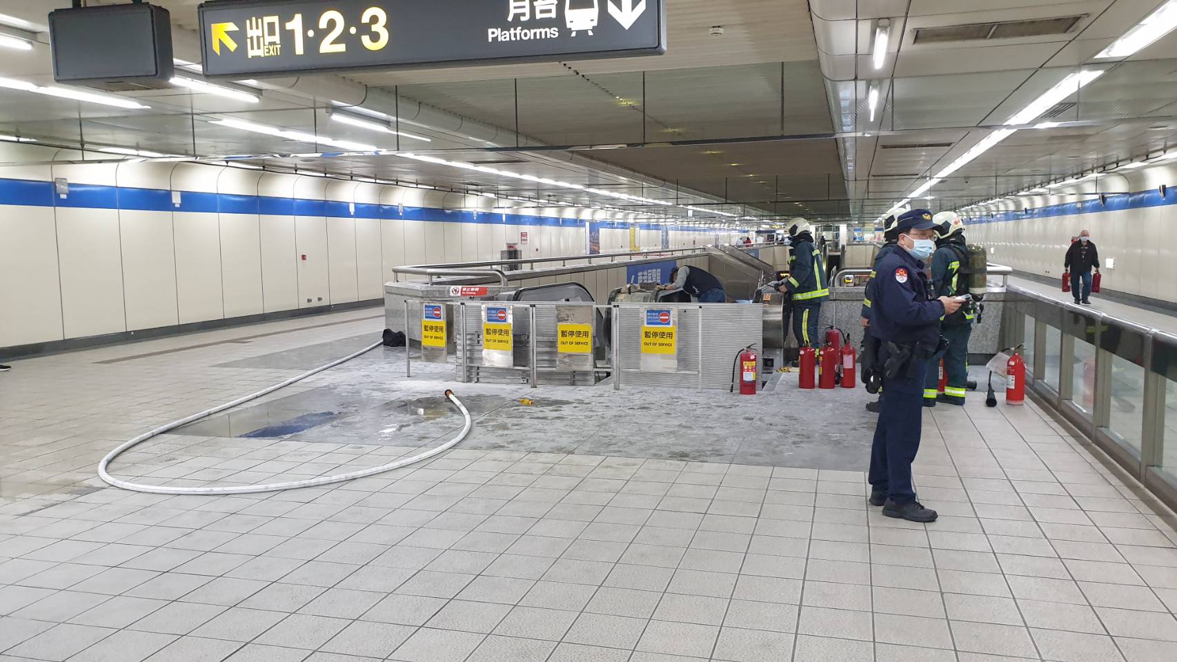 ▲▼北捷善導寺站手扶梯冒煙。(圖/東森新聞)