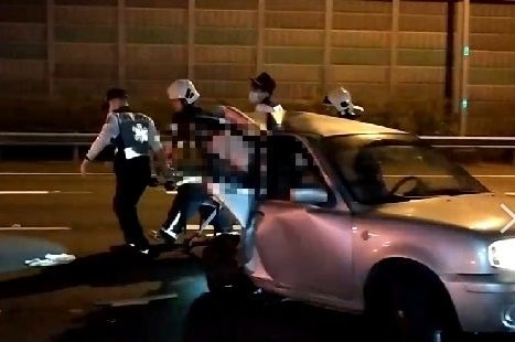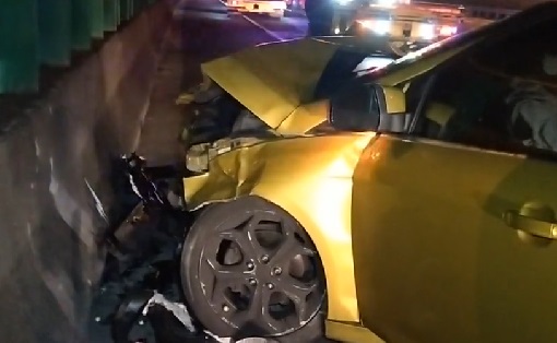 今(25日)凌晨4點3分,國道1號南下約365k處,發生一起重大車禍事故,地板車體零件碎滿地,可見當時撞擊力道之猛烈。綠色轎車車頭全毀、安全氣囊爆開,停靠在內側車道,警消趕抵馳援,先將肢體擦傷的綠色轎車男性駕駛送醫治療,而另一輛銀色轎車整輛車體嚴重變形、車體後方凹陷,一名女姓駕駛受困車內,警消趕緊破壞車體將人拉出送醫急救。