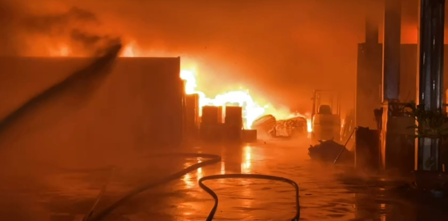 據了解,警消在晚間10時39分接獲通報,到現場發現是一家塑膠工廠,當時工廠已經陷入火海,濃濃的黑煙直竄天際,經過一個多小時的灌救,在晚間11時55分順利控制火勢,面積初估約500平方公尺,損失2000多萬,沒有人員傷亡,詳細的起火原因仍有待釐清。