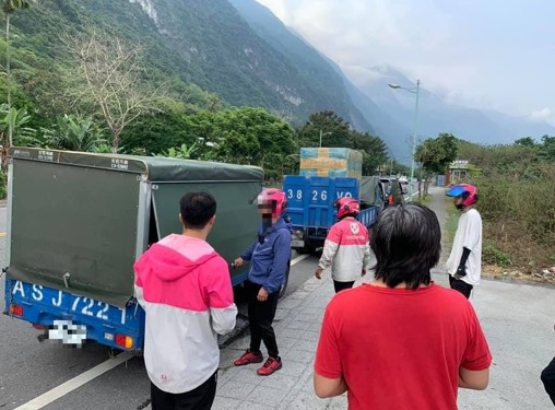 ▼外送員自願放下工作,將物資送往事故現場。(圖/翻攝自花蓮爆料王)