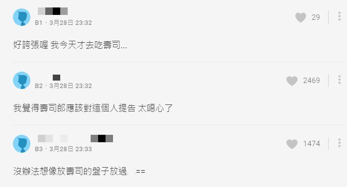 文章曝光後,瞬間引起眾多網友大力撻伐,不少人紛紛表示,「我覺得壽司郎應該對這個人提告,太噁心了」、「好誇張喔,我今天才去吃壽司」、「好噁,這算公然猥褻了吧」、「麻煩把原圖投訴⋯⋯情趣可以,但這樣會影響其他想去吃壽司的人」、「乾剛吃的麵差點吐出來」。