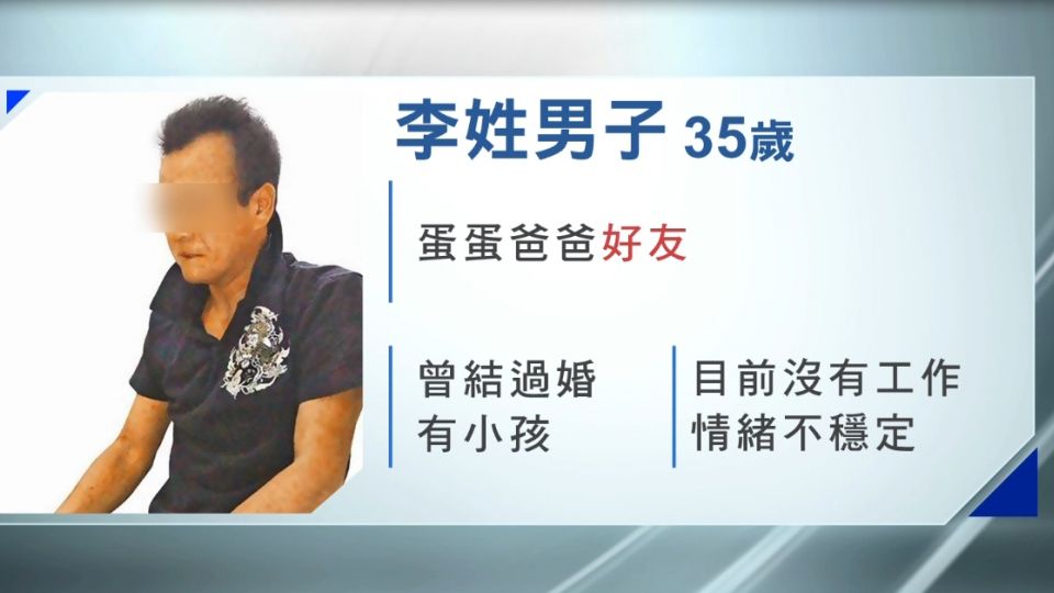 這名涉嫌虐童的李姓男子,其實是蛋蛋爸爸的室友,因為他目前沒有工作。因此蛋蛋的爸爸,才會把小朋友交給李姓男子照顧。不過蛋蛋的爸爸,似乎也對李姓男子不太放心。還曾經傳簡訊,希望能把蛋蛋交給家人照顧。不過讓家屬不解的是,這名李姓男子其實結過婚也有小孩。質疑他為什麼還能虐待這麼小的小朋友。