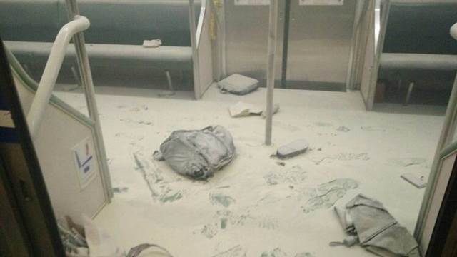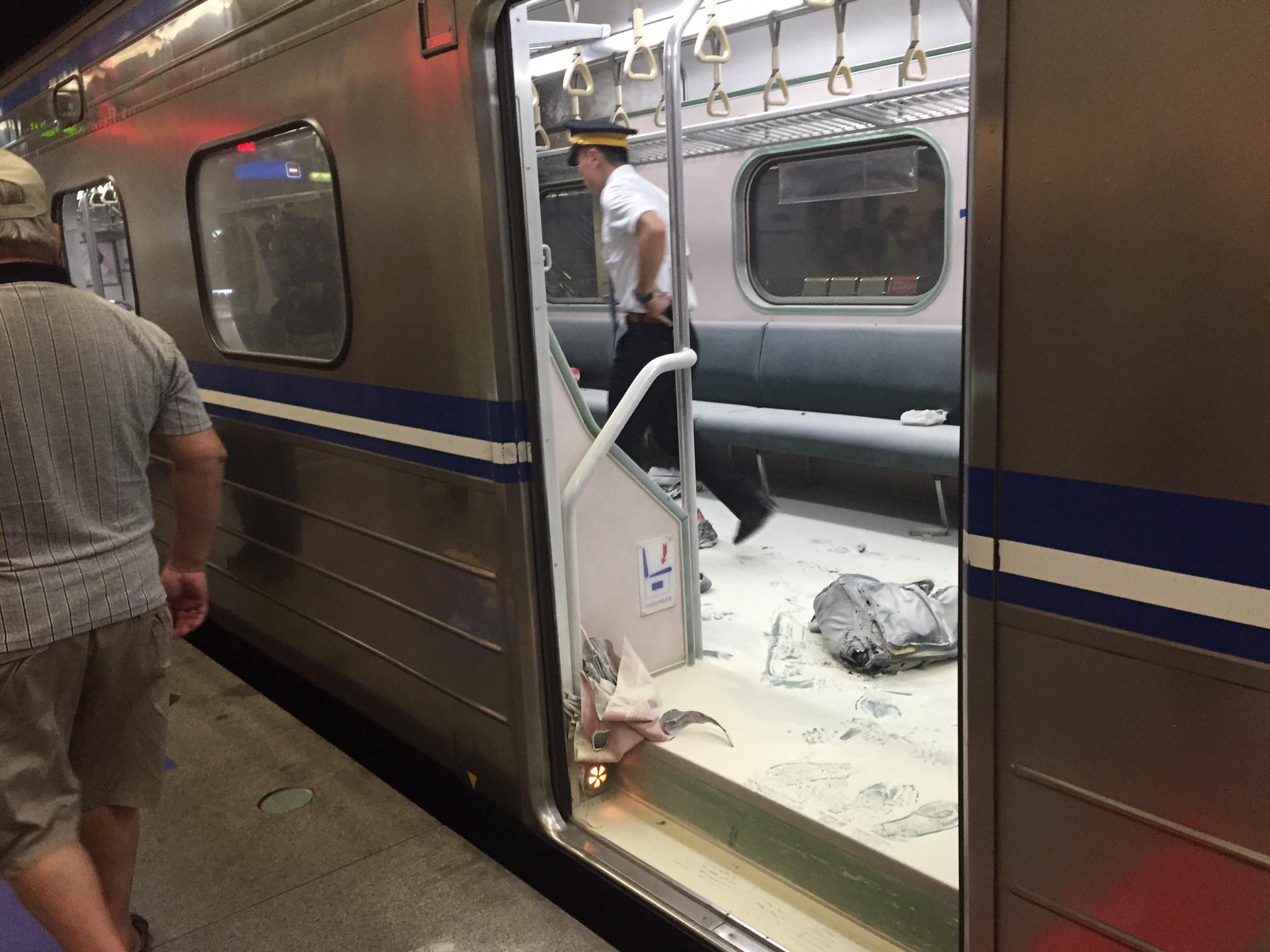 網友在臉書社團「爆料公社」PO出照片,台北往松山的電聯車疑似是發生爆炸事件,現場一片狼藉,該網友表示本來想在松山站上車,結果看到裡面的人都紛紛衝出來說不要上去,還有不少人燒燙傷。