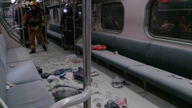 爆炸聲,現場驚叫連連,甚至有民眾的頭髮都起火了。據了解第6車廂閃出火光,直到列車到松山車站,乘客才紛紛下車,初步懷疑是否為機械故障,警方已到場調查起火原因,也派了水箱車10輛、救護車4輛等,並調派52人到場救援。目前20位乘客受傷,5人已送醫,而受傷的人分別被送往忠孝醫院、北醫、三總。