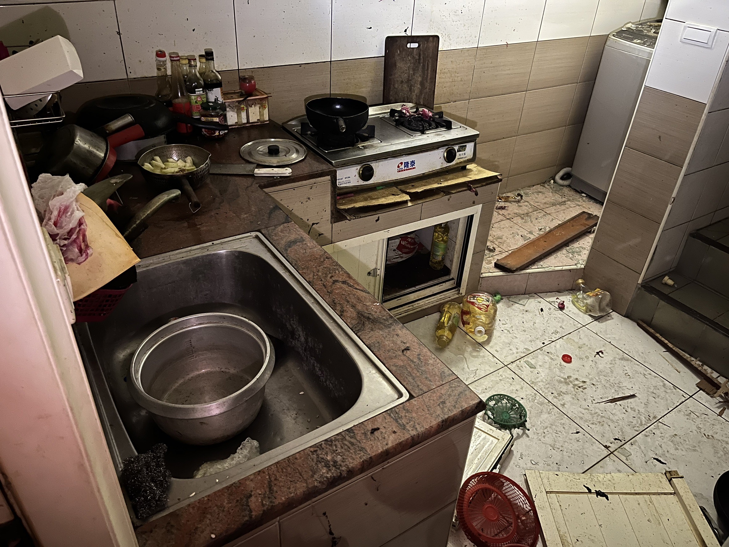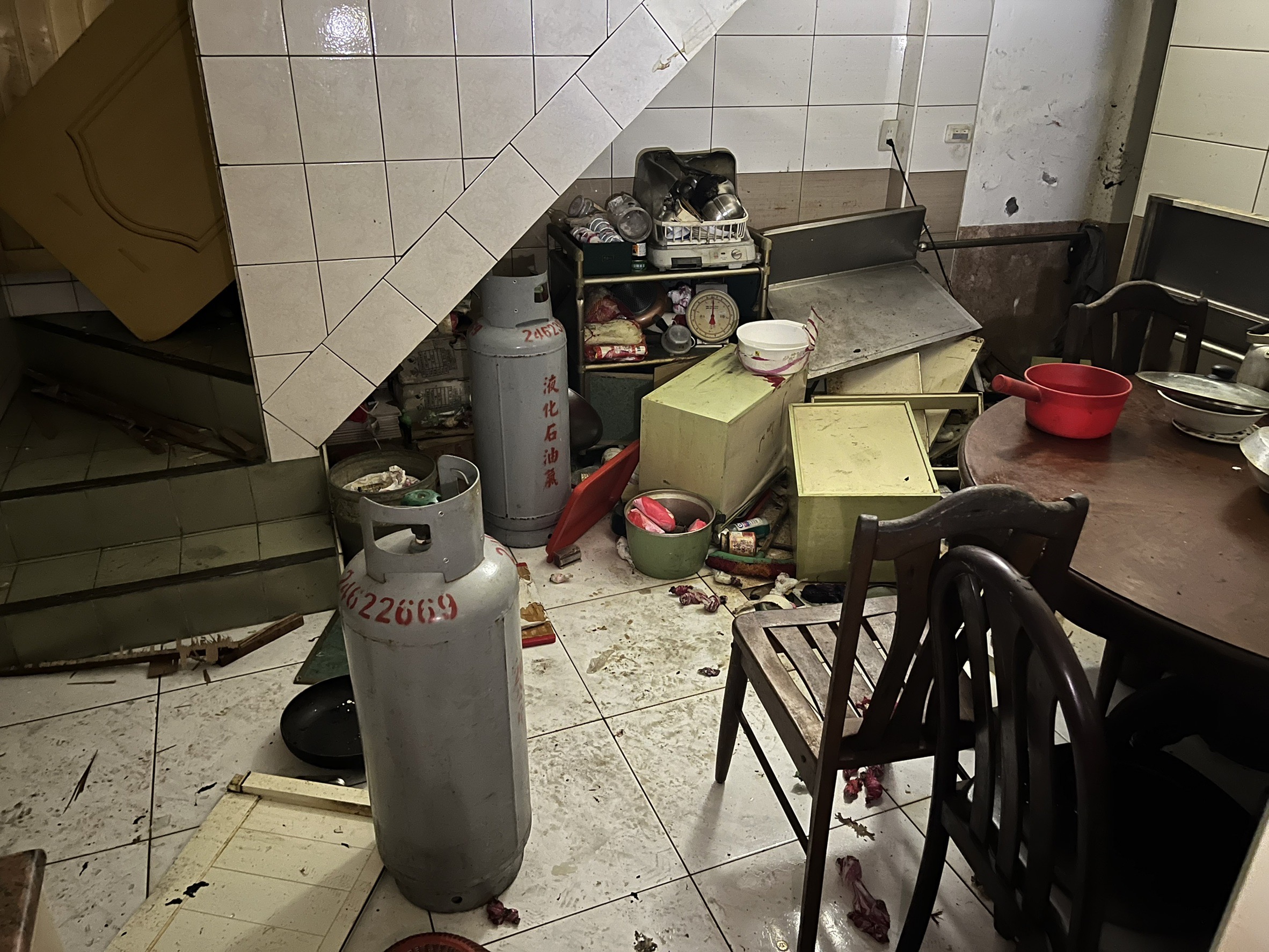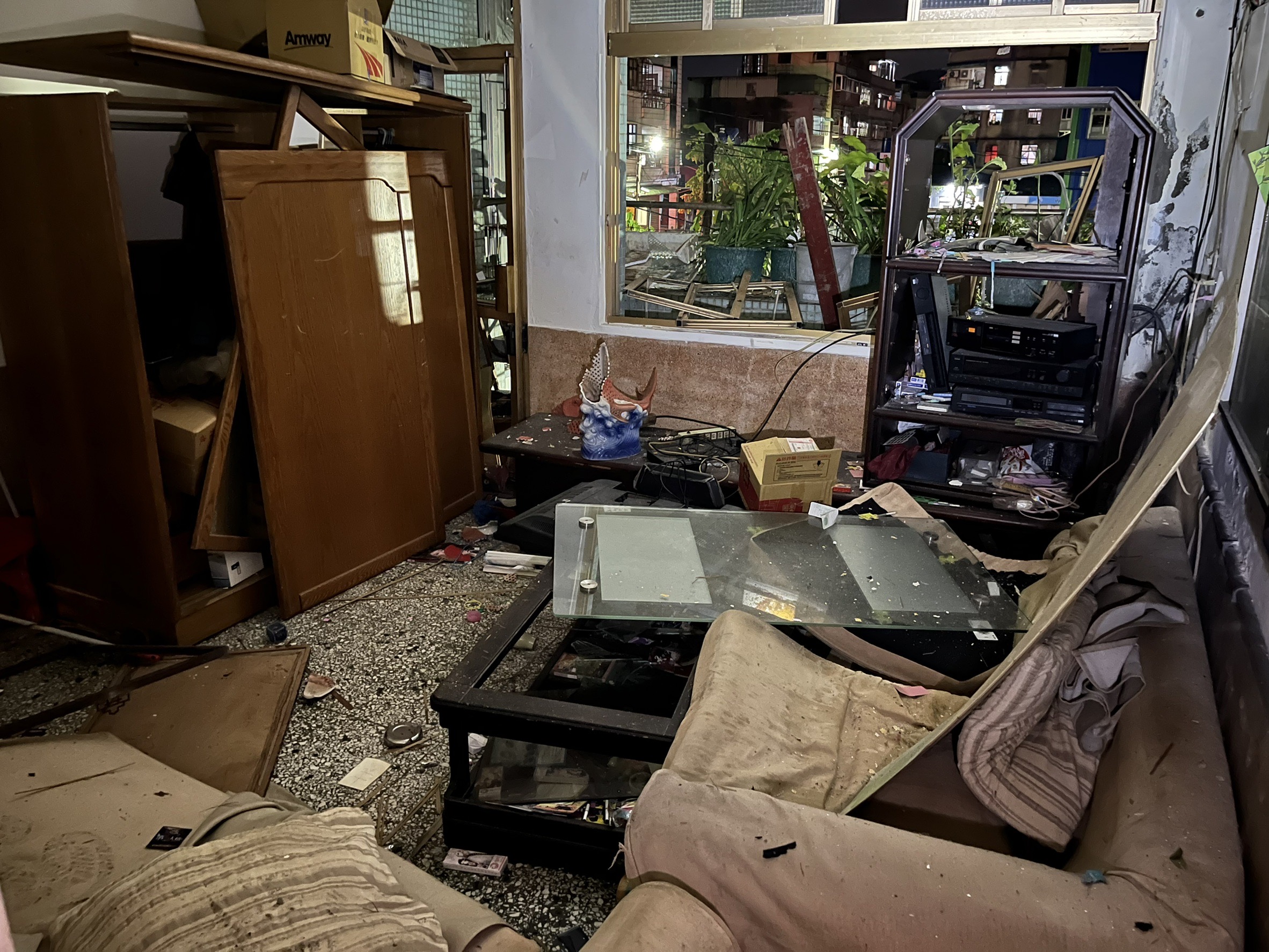▼婦家中家具被震得相當混亂,可見當時沖擊力道之大。(圖/東森新聞)