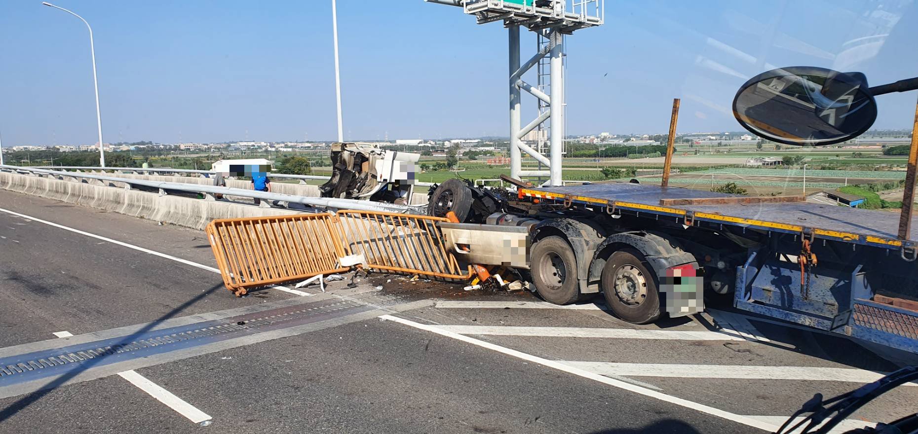 西濱快速道路又發生車禍!今(28)日下午14點多,台61線、北上雲林麥寮段216k橋頭交流道發生一起拖板車自撞護欄,造成交流道封閉,53歲的蔡姓駕駛疑似恍神,正面撞上分隔處護欄,造成車頭斷裂前翻,滿地油、水一片狼籍。雲林縣消防局獲報後不敢大意,派遣三個分隊前往搶救,所幸駕駛沒有大礙,自行脫困,由救護車送往醫院治療,至於車禍原因由警方調查中。