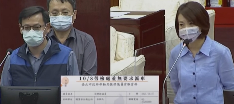 北市環保局科長黃寬助:「我們環保局的部分,是為了確保所有值勤的這些車輛,都能夠符合相關的職安的規定,所以我們當天就調派了,在事前我們就調派了一些,不同類型的各式樣的車輛,總共是13輛,我們主要的目的是希望勞檢處這邊,來協助指導我們。」解釋是希望勞檢處可以 加以指導,但這樣的說法,台北市議員簡舒培 卻不買單。