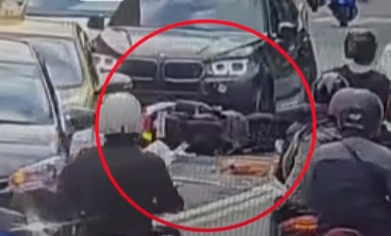畫面中看到交通繁忙的,台北市民生東路一段,計程車經過路口後就往路邊停靠,但計程車才剛停住,後方穿越路口而來的機車,路線偏斜直接撞上了計程車後側,騎士人拋飛出去,機車則橫向撞擊到,另一輛黑色自小客才停了下來,31歲的機車騎士身上多處擦挫傷,而車禍當時疑似是計程車駕駛,搭載的乘客要下車才會選在路口邊停車。