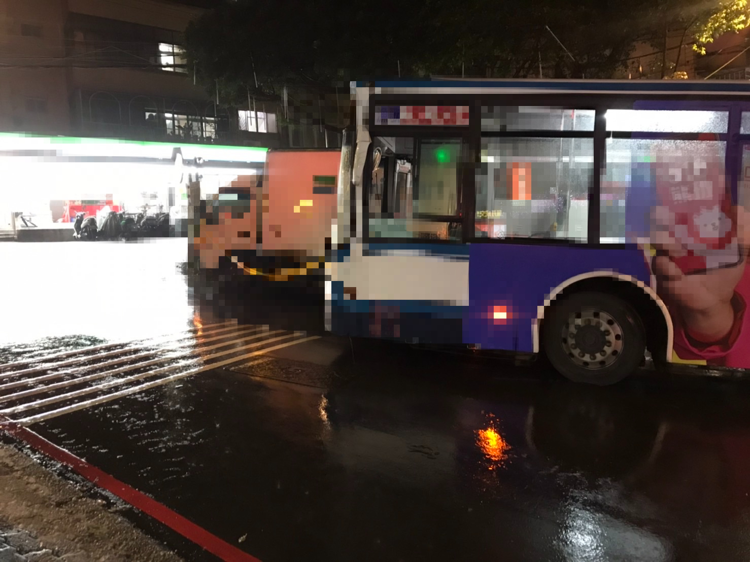 新北市警察局新店分局今天表示,昨天晚間9時21分獲報,新店區玫瑰路巷口發生貨車和公車碰撞事故,警方趕抵時,發現小貨車駕駛45歲楊姓男子頭部嚴重變形,經送往台北慈濟醫院搶救,仍宣告不治。