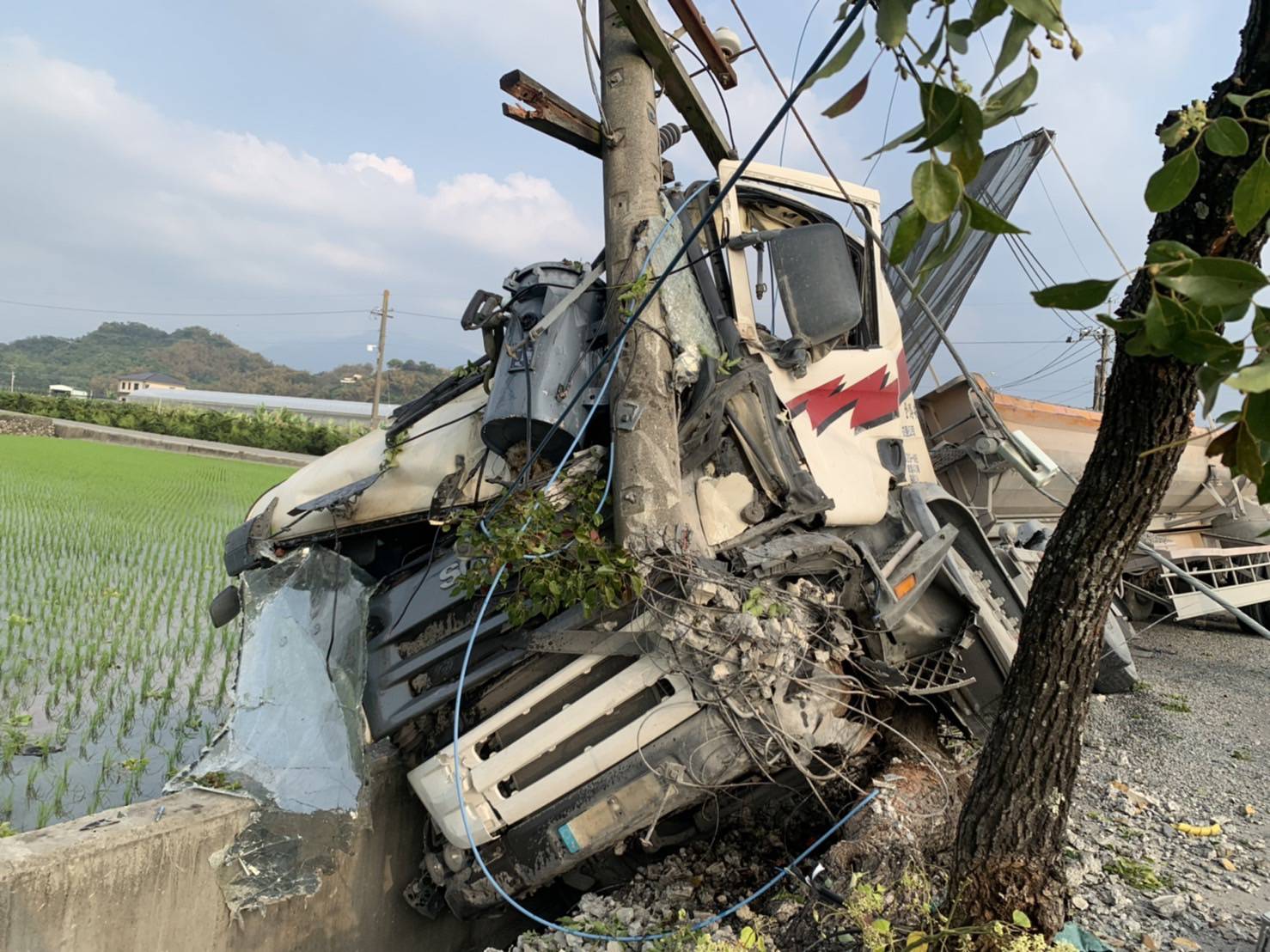▼砂石車車頭毀損嚴重。(圖/東森新聞)