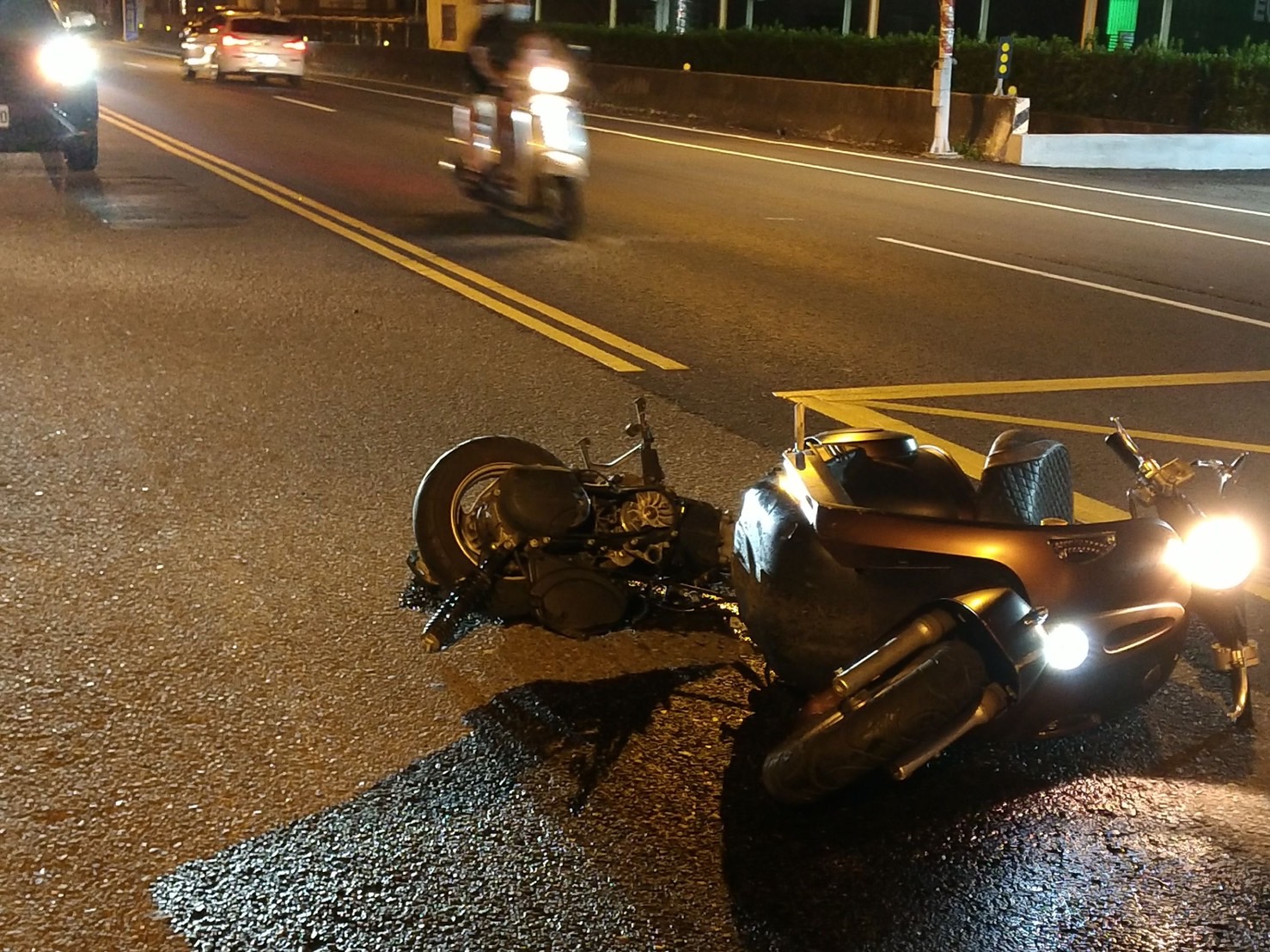 ▲▼機車零件、碎片散落在馬路中間。(圖/東森新聞)