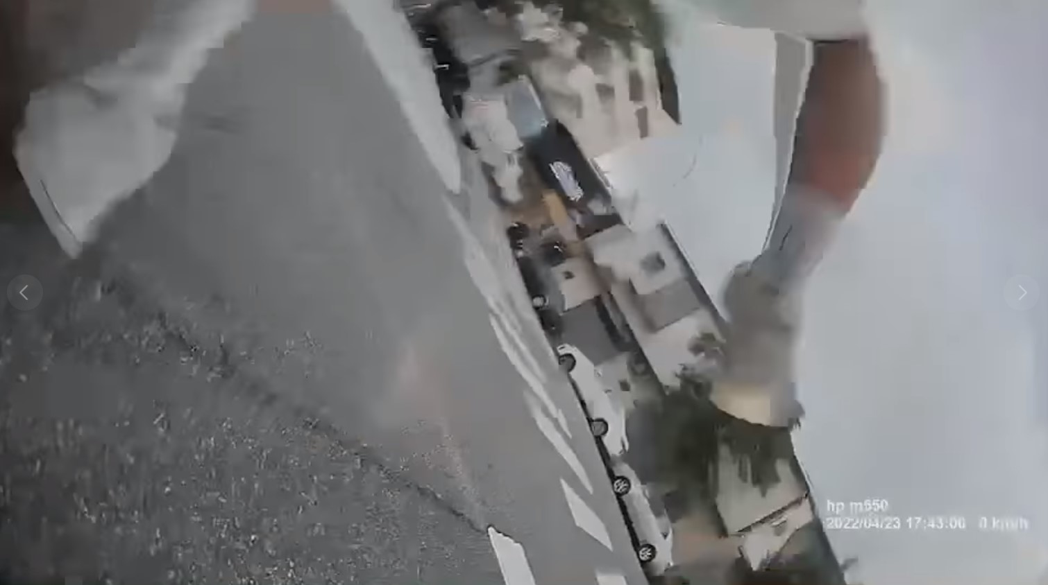 影片中,羅男向前行駛,到了T字路口時開始將車速減慢,但是洪男下秒就從羅男的右側竄出,直接吃線轉彎,不偏不倚地撞上羅男的重機,畫面也跟著車子一起倒地。影片中還能清楚聽到洪男的煞車聲,然而仍不幸撞上,並出現機車零件破裂的聲音。