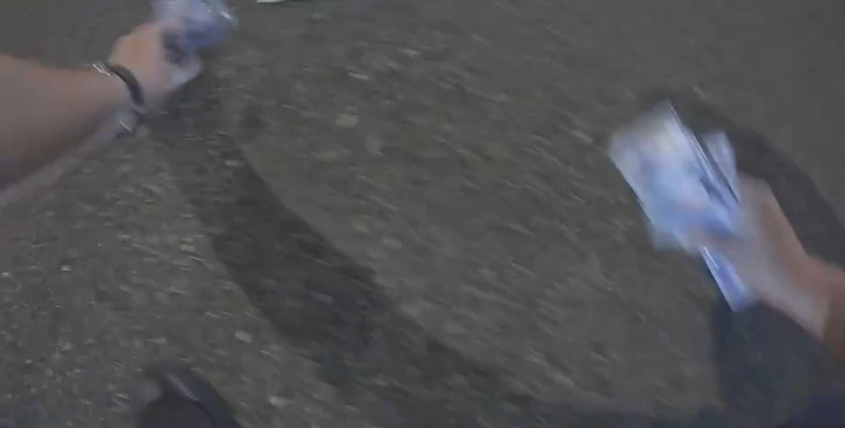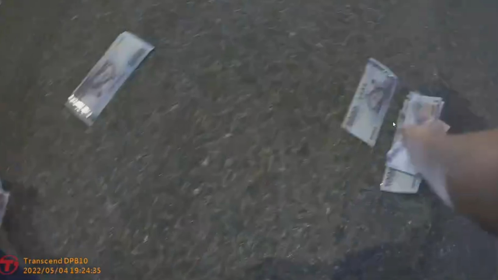 ▼警方幫忙撿取鈔票,事後發現有騎士偷拿。(圖/東森新聞)