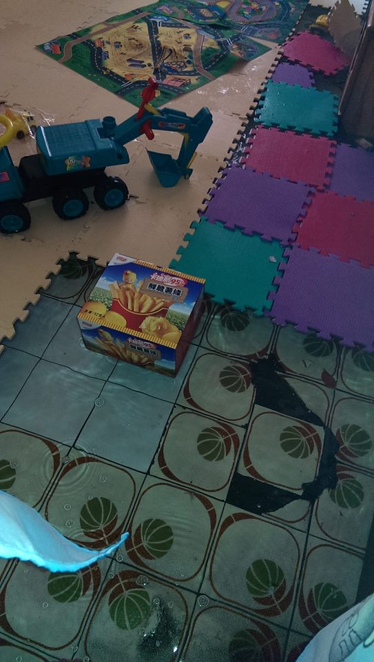 從屋主拍的照片及影片可以看到,家裡的樓梯像瀑布一樣,地板都是積水,許多傢俱也紛紛遭殃,物品四處散落,巧拼就像浮板一樣到處飄盪,非常悽慘。而網友看到後都安慰說「大家平安最重要」、「因為你們無私借出地方供消防隊滅火,災難才沒有擴大」、「好心會有好報的」。