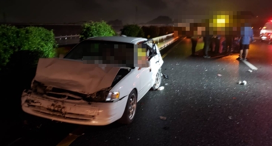 ▼今天晚間國道1號台南麻豆南下路段,發生一起嚴重車禍。(圖/東森新聞)