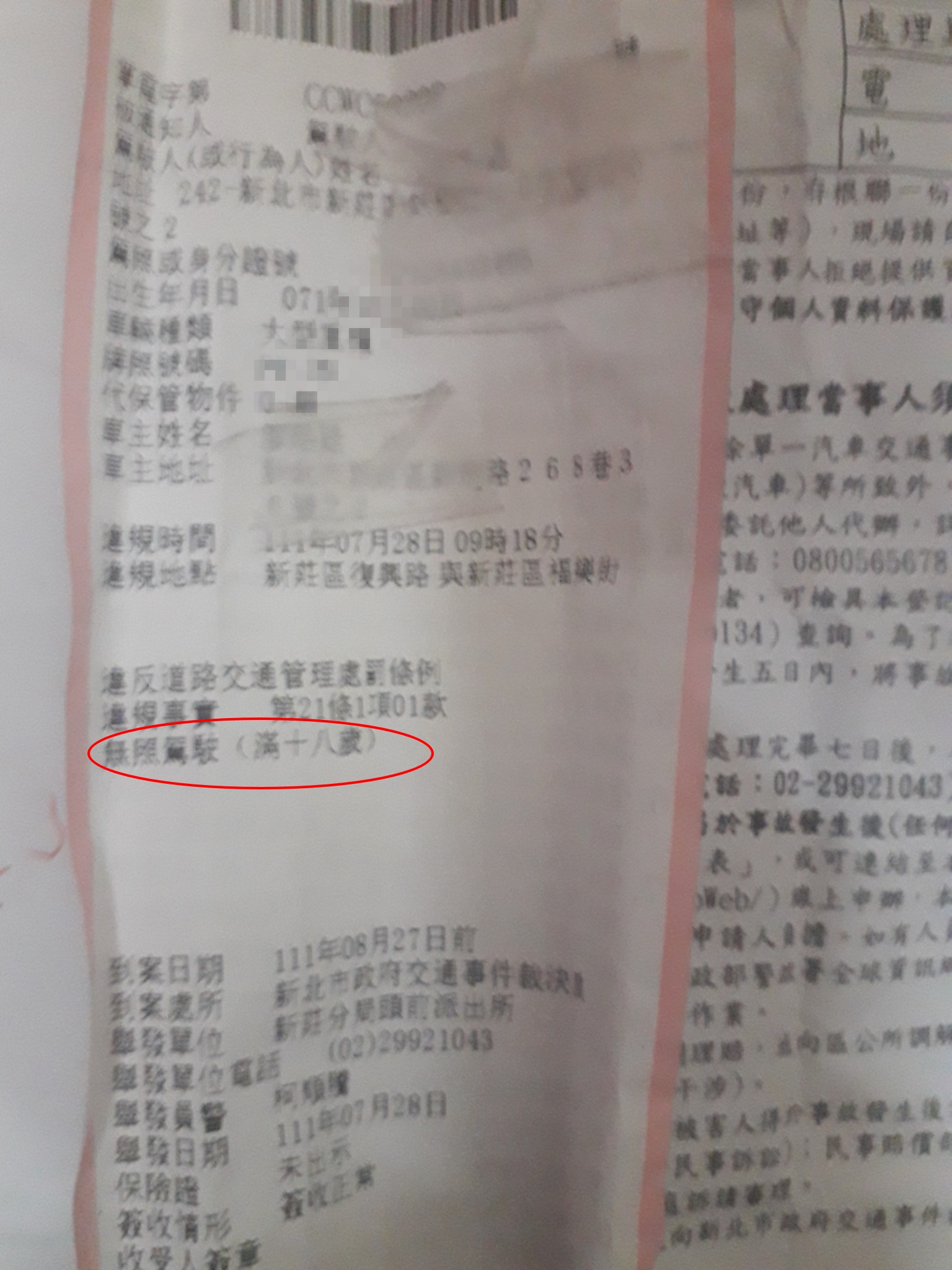 ▼廖男與人發生擦撞報案,結果反因無照駕駛被開單。(圖/翻攝自臉書社團「爆料公社(官方粉專專屬)」)