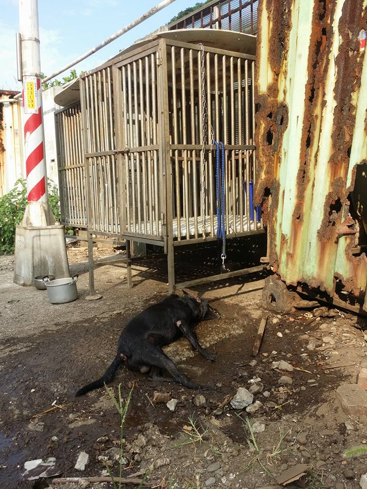 雖然網友與他的朋友立刻採取搶救措施,解開牠身上的狗鍊,還趕緊拿一大桶水將牠淋溼降溫,希望能挽回一條生命,但水碰到黑狗身體的瞬間居然「慶煙」,可見當時的高溫。雖然網友極力的搶救,黑狗仍然回天乏術,就這樣活活被烤死。