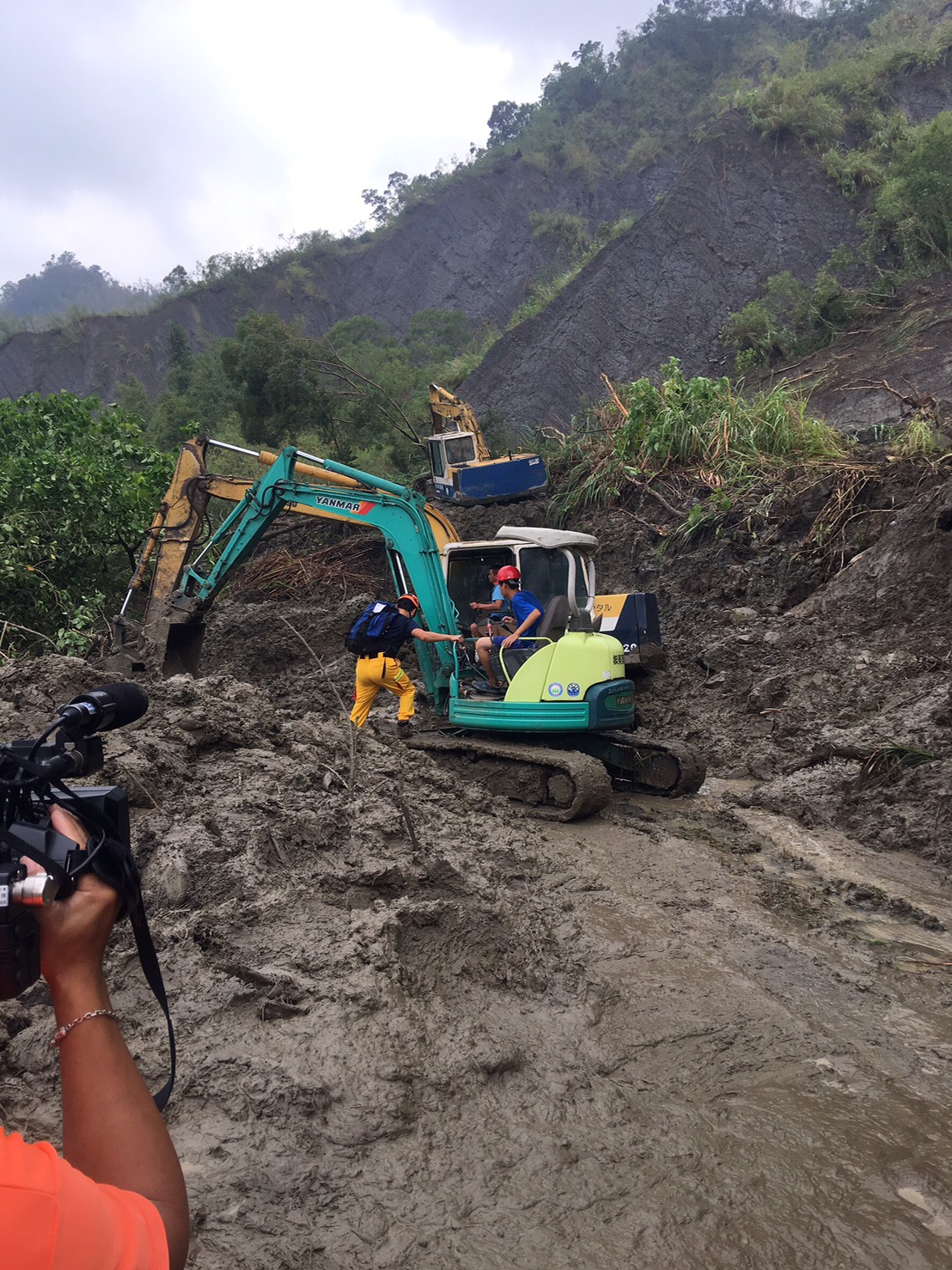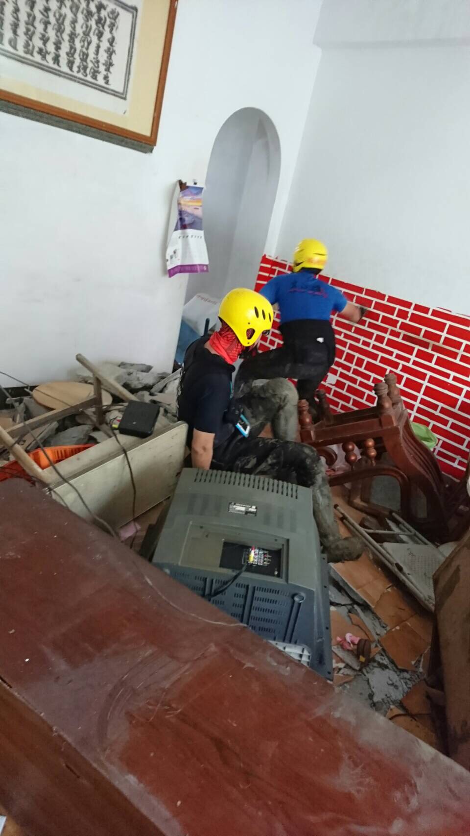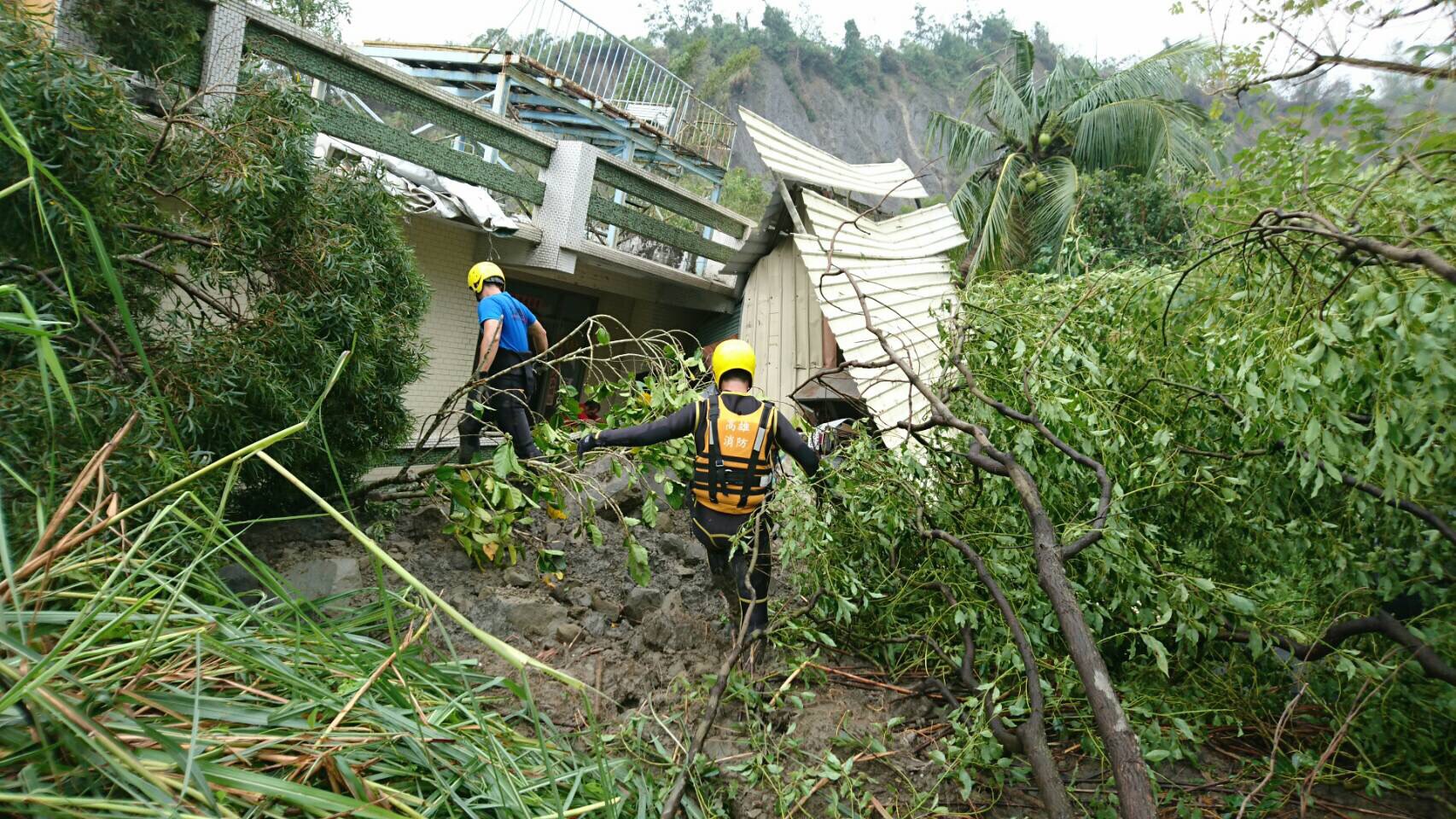 警、消人員和救難人員(含搜救犬)共10車20人前往,燕巢分隊長王靖堯到現場後回報,房屋已被土石滑落沖至下坡處約20公尺處(高度落差約10公尺),受困民眾弟弟抵達現場後表示,「他父母及哥哥共3人失聯疑似受困該地點」,目前啟動重機具開挖,待開挖完成後架設平台垂降進行搶救。