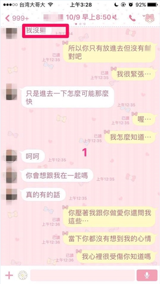 除了報案外,該名小模也在自己的臉書上公開遭到狼襲的事情,並且同步PO出事發之後,自己與攝影師的對話,從圖片中可以清楚看到,攝影師承認自己的情不自禁,還說一開始沒有打算「霸王硬上弓」,只是看到電影播放在床上翻雲覆雨的畫面時,才把持不住自己的「慾望」,而對此,小模說當天看的電影是由林依晨、秦昊主演的《234說愛你》,內容根本沒有奇怪的情色畫面。