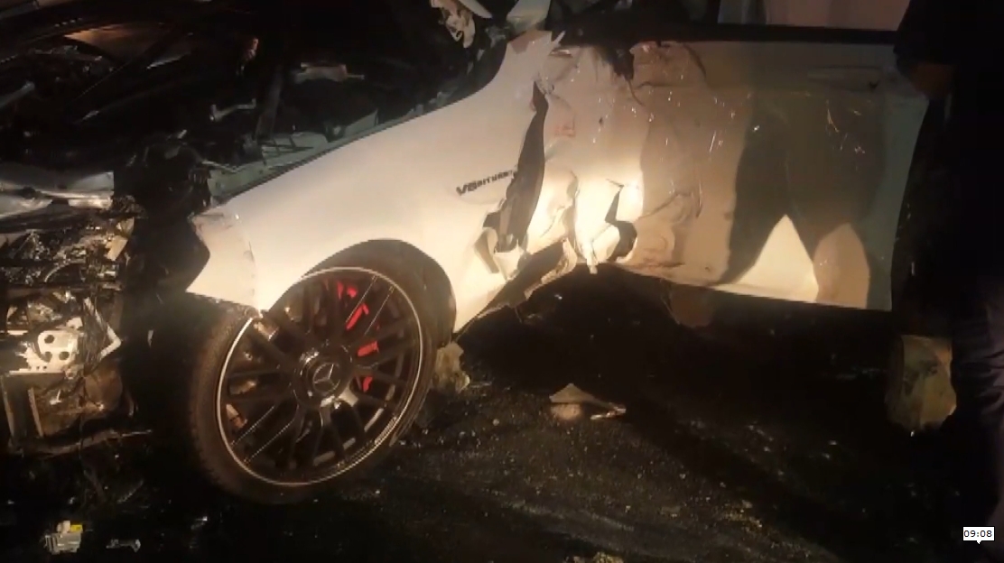 深夜,賓士車一路失控撞上民宅跟行人,讓周邊駕駛人全嚇壞,當場目擊一場離譜連環撞。把時間往回倒,賓士在路口先直接撞上停紅燈的機車,害騎士被撞飛,倒在路中。