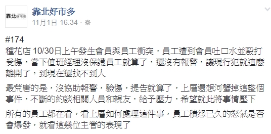 美式賣場好事多風波不斷,10月30號發生有會員與員工發生衝突事件,民眾在「靠北好事多」臉書粉絲專頁po文爆料,有員工遇