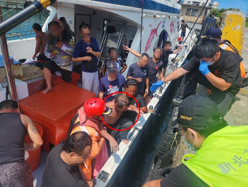 新北萬里漁港有船出港海釣,沒想到竟發現一名洪姓男子抱著彩虹游泳圈漂浮在海上,船員見狀立刻丟救生圈將人救上岸,通報警消將男子送醫。