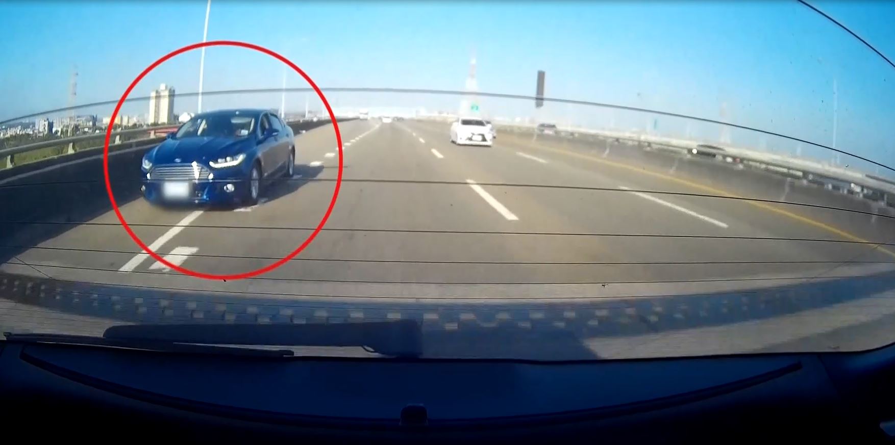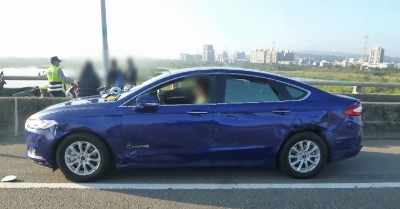 中彰快速道路元旦下午發生一起車禍,有輛藍色轎車疑似超車不慎,撞上前方百萬