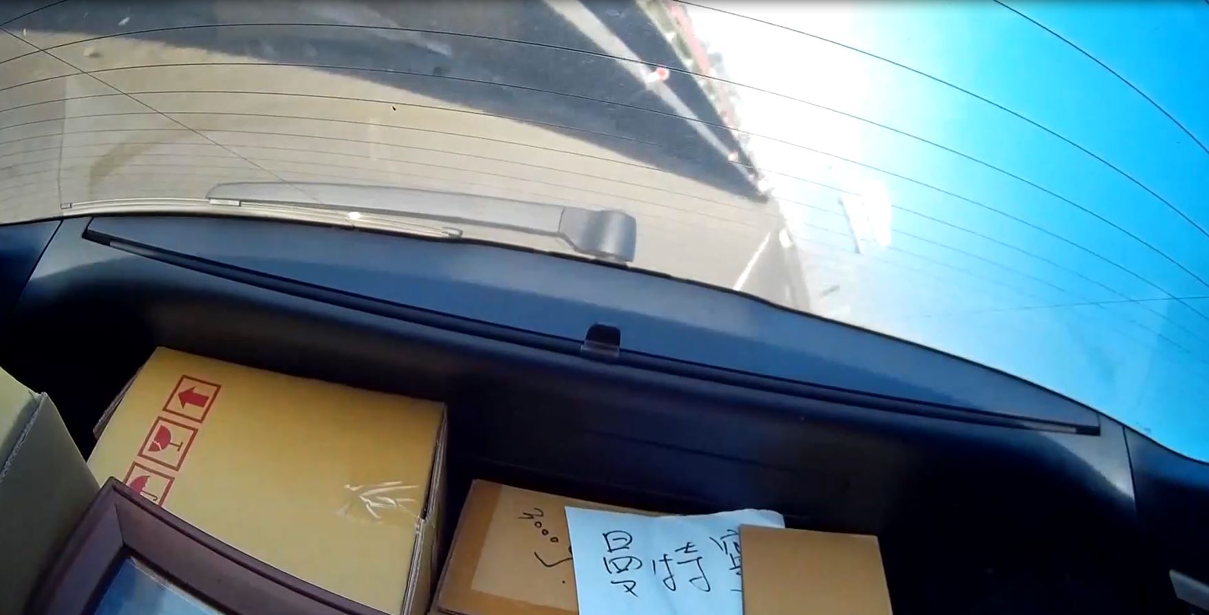 ▼從周女的行車紀錄器可以清楚地看倒車體180度翻轉,車內母子全都嚇壞。(圖/東森新聞)