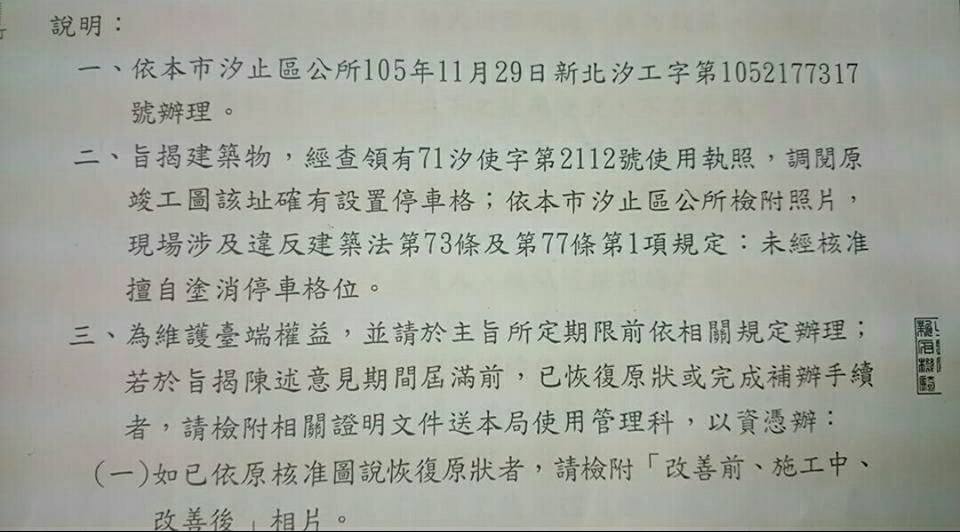 區公所公文寫道,原址就有設置停車格,當地塗消停車格的作法已經違反《建築法》,所以必須要重新塗上停車格。