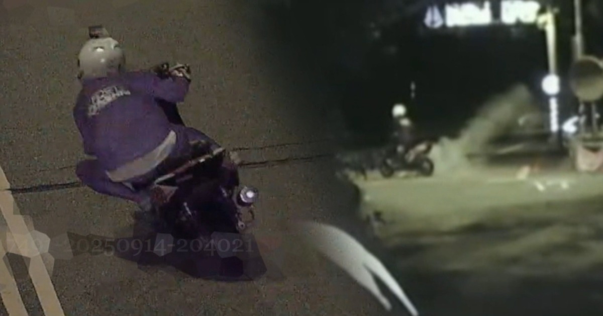新北市八里區龍米路三段,稍早發生自撞車禍,一輛混泥土車自撞,導致燈桿斷裂,後方騎士剎車不及撞上燈桿受傷,詳細車禍狀況,警方持續釐清。