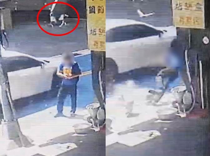 現場監視器拍下,男子站在人行道查看手機,突然有大量且巨大的磁磚、石塊落下,男子還來不及反應,就被重砸在地不起,一旁車輛見狀趕緊閃避,深怕成為下個受害者。救護人員趕赴現場,確認男子頭部有撕裂傷,緊急處置後送醫治療。詳細事故原因及後續責任歸屬,有待進一步釐清。