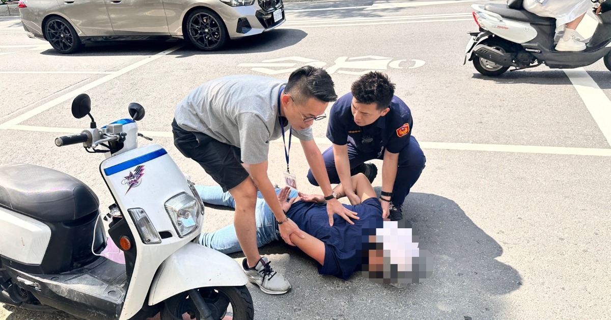 新北中和今天(1日)上午7點多,一輛機車倒地後與大貨車發生擦撞,騎士當場沒了呼吸心跳,搶救不治,大貨車司機被警方依照過失致死罪送辦,不過警方看監視器畫面發現沒有人撞到騎士,他卻突然倒地,重回現場路面平坦也沒有凸起物,究竟騎士怎麼會發生意外,一切仍在相驗解剖。