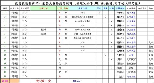 ▲▼乘客名單及傷患送醫統計。圖/翻攝畫面