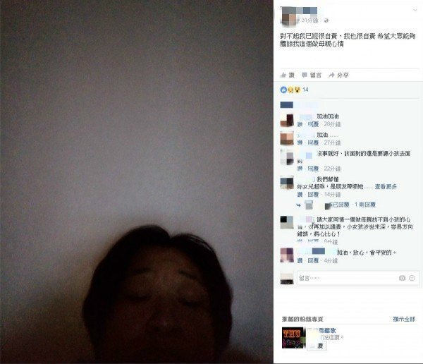 ▼江母在臉書PO文道歉:希望大家能體諒一個母親的心情/翻攝自臉書