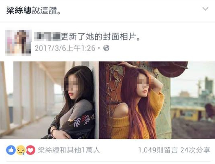 除了道歉私訊之外,昨天陳女姊姊在臉書封面換上合照,來悼念已經到天上做天使的妹妹,引來許多人前來留言為姐姐打氣,不過有網友發現,梁女也在這張照片上「按讚」,對於這樣的舉動,讓許多人看了相當傻眼「你的媽媽叫你不要玩臉書←_←」!