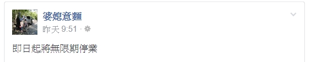 ▼婆媳意麵在臉書發文表示將無限期停業(圖/婆媳意麵臉書)