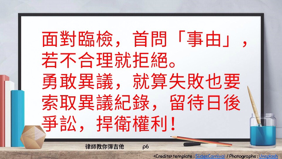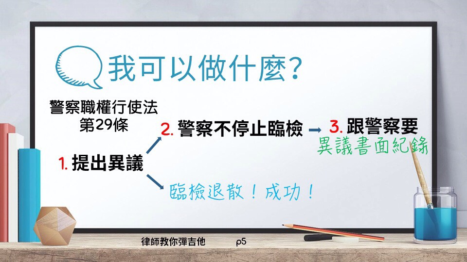 除了上面的保護方法,請記得「凡事講求證據」口訣,#記下臨檢的警察編號、#時間地點,甚至是 #錄影蒐證也可以,在你日後進行檢舉、爭訟時,都是一份利器!