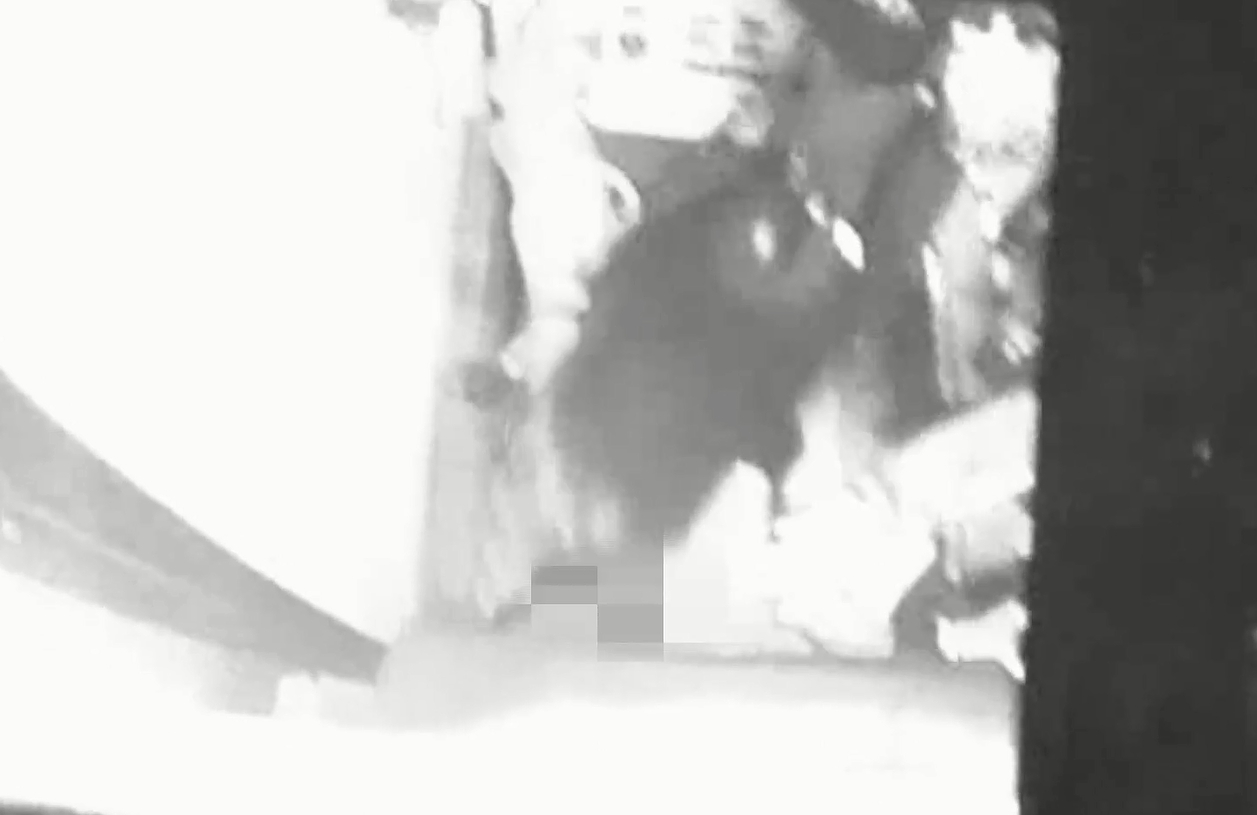 ▼監視器畫面中顯示出,同學與蘇女嬉鬧後,蘇女被推到車門口。 畫面經變色處理(圖/東森新聞)