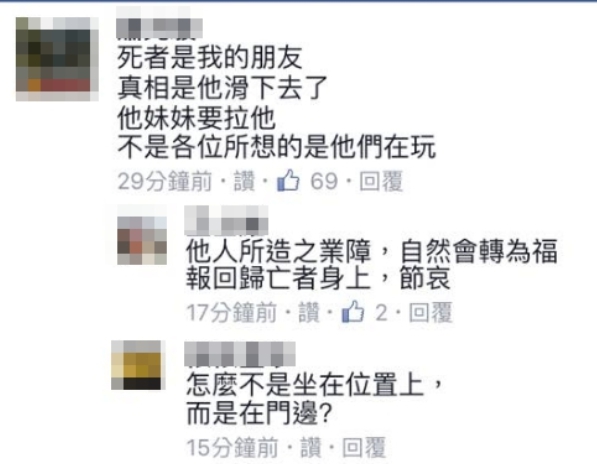 死者的表哥也表示:「大家不要再嘴了,我是妹妹的表哥,也在事發現場,事實就是沒有任何嬉戲,而是車上門莫名的打開了!妹妹伸手去拉姊姊沒拉到,就發生事情,請各位不要捕風捉影,亂講一堆、誤導大眾!『我只想還我妹妹一個公道!』」
