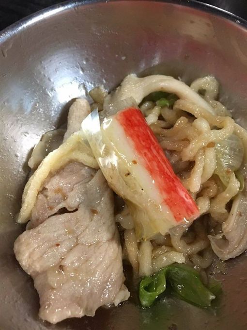▼蟹肉棒的塑膠套沒拆掉就下去煮。圖/爆料公社