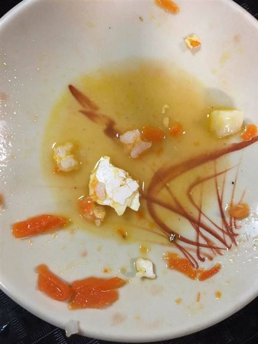 ▼紅蘿蔔炒蛋裡面有超大蛋殼。圖/爆料公社